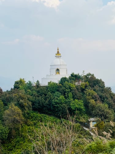 One of the best viewpoints in Pokhara - the white stupa sits above Phewa Lake and offers stunning panoramic views of the lake, hills, and the city below.