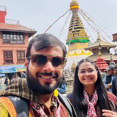 The moment we landed, Kathmandu felt familiar - a bit like home. The chaotic roads, honking, street vendors, and buzzing markets reminded us of many Indian cities.